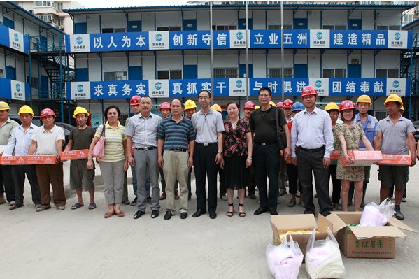 7月11日下午,陜西省財貿(mào)工會主席段喬斌,副主席常秀珍一行在我集團(tuán)黨委副書記、副總經(jīng)理、工會主席曹振德、工會副主席安衛(wèi)紅、集團(tuán)建設(shè)三公司經(jīng)理任秀學(xué)等的陪同下,到我集團(tuán)建設(shè)三公司紅星美凱龍工地施工現(xiàn)場看望一線職工。