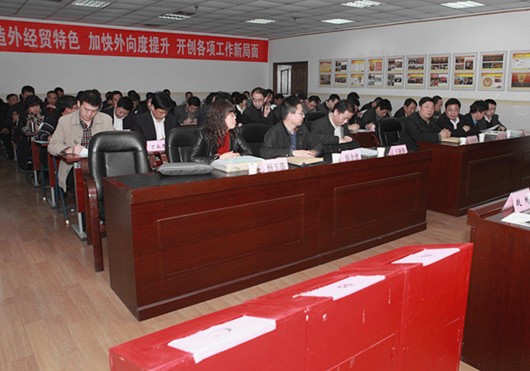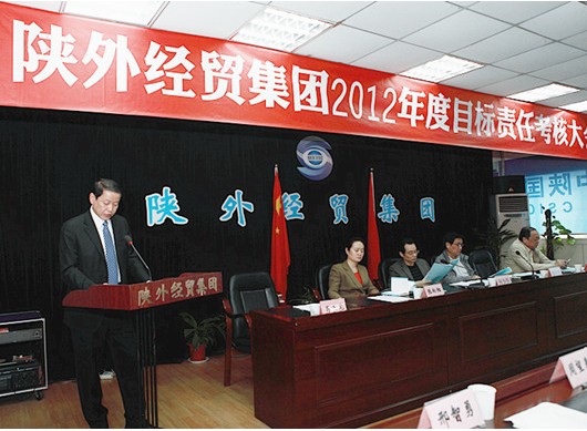 會議由考核組副組長、國資委副主任秦民生主持,國資委副書記何少華在會上作了動員講話,集團董事長肖玉龍代表外經貿集團作了述職報告。