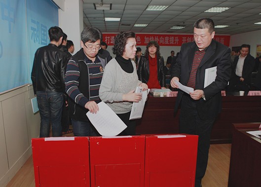 圖為:參會人員對領導班子成員進行民主測評