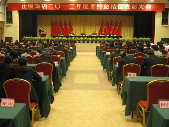 飯店黨委書記、總經理劉浩川講話指出,2012年,是止園飯店全面提升經營硬件、豐富經營內涵、提高經營水平的重要一年。飯店在省外經貿集團公司黨委的領導下,深入貫徹落實科學發展觀,以“標準化建設年”和四星級達標工作為重點,以實施裝修改造二期工程,著力提升飯店的硬件水平為動力,以精細化管理和標準化服務為抓手,以深化內部改革,管理創新、機制創新為突破口,繼續發揚艱苦奮斗,頑強拼搏的止園精神,狠抓基礎管理、服務規范和市場營銷,按照年初確定的奮斗目標,積極應對市場挑戰,克服了裝修期經營總量下降、資金困難、成本支出增加等重重壓力和考驗,各項工作穩步推進,完成年度各項目標和工作任務,實現了企業穩定健康發展。劉總總結和回顧了2012年的工作情況,并對認真做好2013年的各項工作,做了安排部署。一是要加強黨的建設和反腐倡廉力度,為飯店經營發展提供有力保障。二是繼續以提高服務為手段,一心一意做好經營工作。三是以人為本,建設和諧止園。四是改進作風,轉變觀念,在全飯店形成說實話、辦實事、求實效的良好風氣。五是以管理提升年為契機,切實提高飯店管理水平。