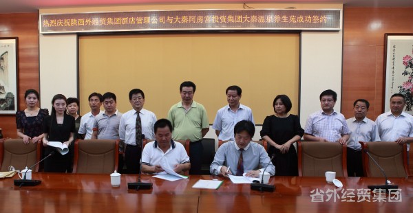 2012年6月20日,集團(tuán)公司董事長(zhǎng)肖玉龍、副總經(jīng)理李鳳成等一行考察了位于西安三橋天臺(tái)路的大秦溫泉養(yǎng)生苑,在與陜西大秦阿房宮投資集團(tuán)董事長(zhǎng)惠吉利會(huì)談后,雙方舉行了熱烈而隆重的酒店管理合作項(xiàng)目簽約儀式。