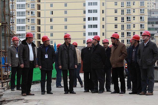3月6日上午,我集團董事長肖玉龍在集團副總經理惠宏軍及集團經營管理部等有關部門負責人的陪同下前往我集團建設七公司陽光北郡(北區)3#、4#安居工程建設項目檢查工作。