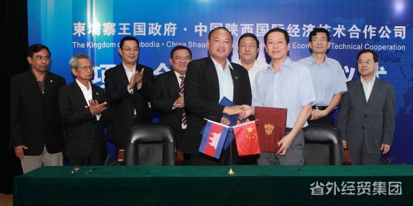 柬埔寨王國國務院秘書長、經濟財政部副部長安天勝與中國陜西國際經濟技術合作公司總經理肖玉龍簽署合作意見書