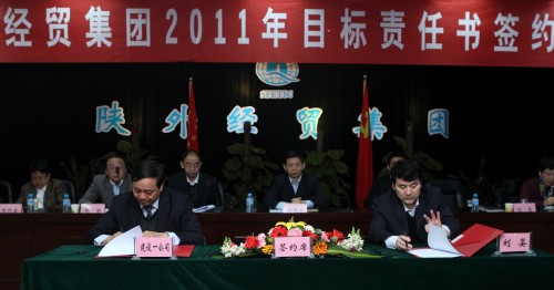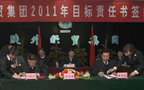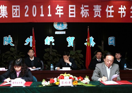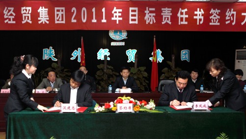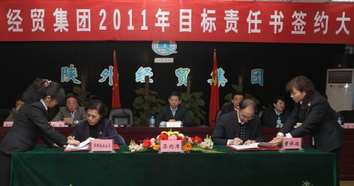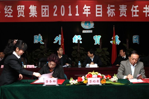 3月17日上午我集團在五樓會議室召開2011年目標責任書簽約大會。會議由集團公司副總經(jīng)理曹振德主持、副總經(jīng)理趙彬宣布2010年度經(jīng)營目標完成兌現(xiàn)情況,集團公司所屬20多個經(jīng)營單位與分管領(lǐng)導簽訂了經(jīng)營、管理、黨風廉政目標責任書。由此,使集團公司2011年完成銷售收入26億元的預期目標任務(wù)分解落實,責任到位。為全面完成“十二五”規(guī)劃良好開局奠定了堅實的基礎(chǔ)。集團公司黨委書記、董事長劉耀華做了重要講話,強調(diào)目標責任考核是一項體現(xiàn)科學發(fā)展觀要求,符合經(jīng)營發(fā)展、管理規(guī)范、廉潔從業(yè)行之有效的好制度,根據(jù)省委、省政府、省國資委毫不動搖的實施年度責任目標考核制度的要求,按照年初確定的目標分解任務(wù)、明確責任、狠抓落實,加強跟蹤問效,促進經(jīng)營平穩(wěn)快速發(fā)展,確保全面實現(xiàn)2011年經(jīng)營目標。