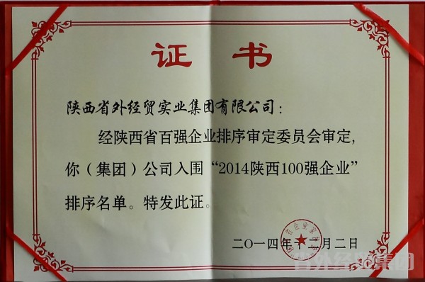 集團公司入圍2014陜西企業100強