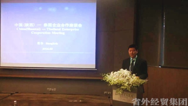近日,中國(guó)(陜西)--泰國(guó)企業(yè)合作座談會(huì)在泰國(guó)曼谷召開(kāi),集團(tuán)公司董事長(zhǎng)肖玉龍應(yīng)邀參會(huì)。會(huì)上,肖玉龍董事長(zhǎng)就集團(tuán)公司和外經(jīng)貿(mào)平臺(tái)的相關(guān)業(yè)務(wù)向與會(huì)嘉賓作了推介發(fā)言,并與泰國(guó)中小企業(yè)協(xié)會(huì)、國(guó)際投資商會(huì)和泰國(guó)商務(wù)部亞洲司官員進(jìn)行了商務(wù)合作會(huì)談,建立了戰(zhàn)略合作關(guān)系,為陜西和泰國(guó)企業(yè)進(jìn)入對(duì)方市場(chǎng)牽線搭橋并提供綜合服務(wù)。