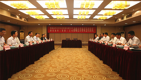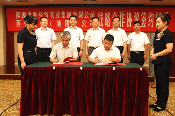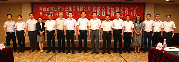 2018年8月17日,陜西省外經貿實業集團有限公司與西安高科(集團)公司戰略合作簽約儀式在陜西省止園飯店隆重舉行。陜外經貿集團黨委書記、董事長肖玉龍和高科集團黨委書記、董事長賈長舜帶領雙方領導班子成員及相關部門負責人出席了此次簽約儀式。